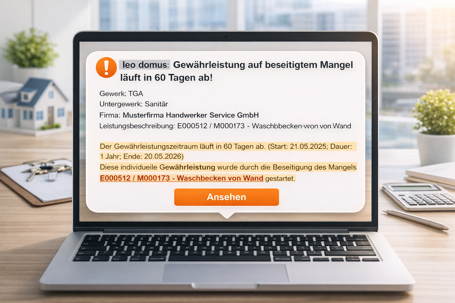 Das System zeigt laufende und auslaufende Gewährleistungsfristen, offene Mängel, Verantwortlichkeiten und Eskalationen. Dadurch werden Gewährleistungsansprüche zuverlässig gesichert und wirtschaftliche Risiken minimiert.